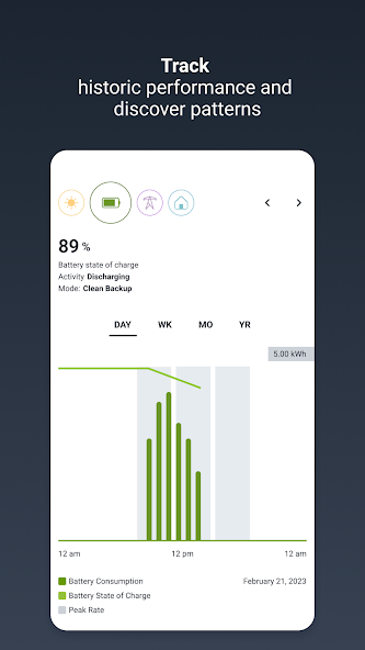 • Discover patterns in your consumption, solar generation, grid, and battery usage