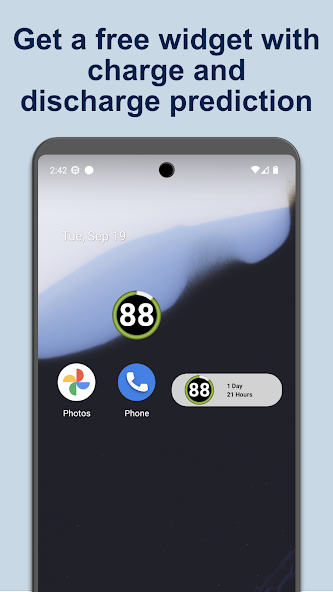 * วิดเจ็ตเพื่อดูสถานะการชาร์จปัจจุบันรวมถึงรันไทม์ที่เหลืออยู่อย่างรวดเร็ว