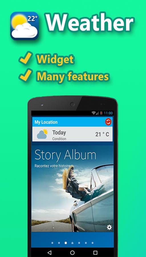 Accuweather Real Time Informationswell ออกแบบเงื่อนไข interfaceweather ของตำแหน่งของคุณ (เมฆอุณหภูมิฝนตกฝนแสงแดดลม ... ) สามารถเข้าถึงได้ง่ายและช่วงเวลาพระอาทิตย์ตกของสถานที่ตั้งของคุณได้ฟรี App7 วันที่คาดการณ์ไว้สำหรับทุกเมืองวิดเจ็ตการพยากรณ์อากาศฟรี ช่วยให้คุณสามารถใส่ข้อมูลที่จำเป็นทั้งหมด ได้แก่ อุณหภูมิความชื้นฝนตกฝนหิมะดวงอาทิตย์ความกดดันในวิดเจ็ตที่ใช้งานง่ายพร้อมไอคอนที่ดี: ดวงอาทิตย์หิมะเมฆ ...
