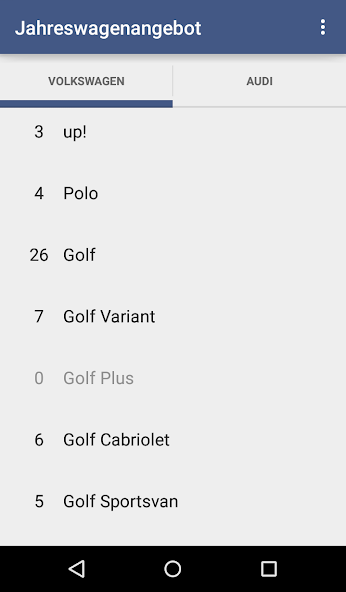 แอพนี้ได้รับการพัฒนาและเต็มไปด้วยรถยนต์ของปีที่แล้ว เนื่องจากเราเป็นเพียงจุดเริ่มต้นเท่านั้นจึงยังมีรถยนต์อายุน้อยกว่าปีในแอพ ผู้ผลิตรายอื่นนอกเหนือจากโฟล์คสวาเกนและออดี้ไม่ได้วางแผนไว้ในแอพนี้
