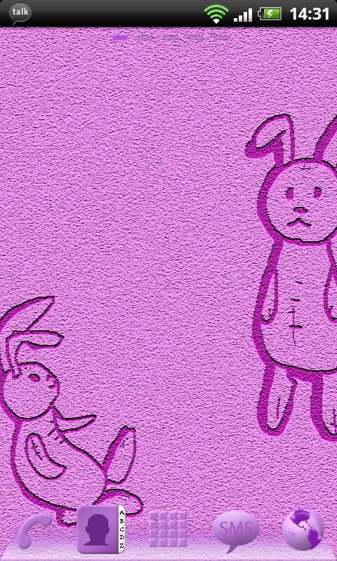 Theme Rabbit น่ารักมากจนคุณจะตกหลุมรักทันที หากคุณเป็นหนึ่งในแฟน ๆ ของสิ่งที่น่ารักและน่ารักธีมนี้ทำขึ้นเพื่อคุณ บนพื้นหลังสีสันสดใสมีกระต่ายน่ารัก - ของเล่นที่นุ่มและน่ารักซึ่งจะทำให้เดสก็อปโทรศัพท์ของคุณมีความสุขมากขึ้น ปล่อยให้สิ่งมีชีวิตที่หอมหวานที่สุดในโลกของคุณและแบ่งปันความร่าเริงของคุณกับผู้คนรอบข้าง Make their day nicer!
