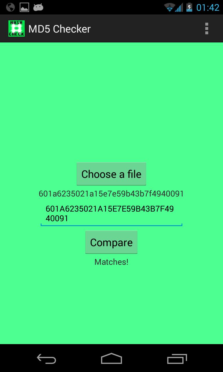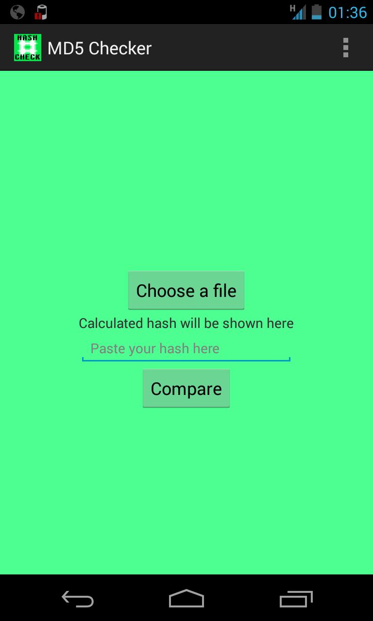แอปพลิเคชันง่าย ๆ นี้จะช่วยให้คุณสามารถคำนวณและเปรียบเทียบแฮช MD5 ของไฟล์บนอุปกรณ์ Android ของคุณ เพิ่มการแจ้งเตือน "คัดลอกไปยังคลิปบอร์ด" เมื่อมีการคัดลอกแฮช