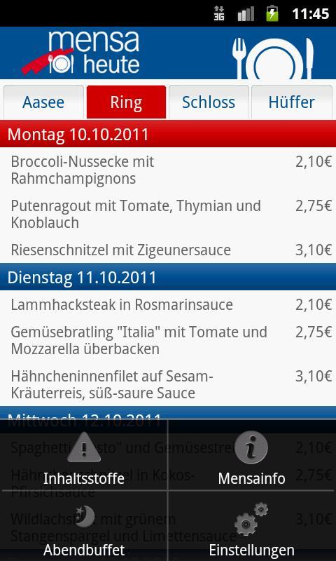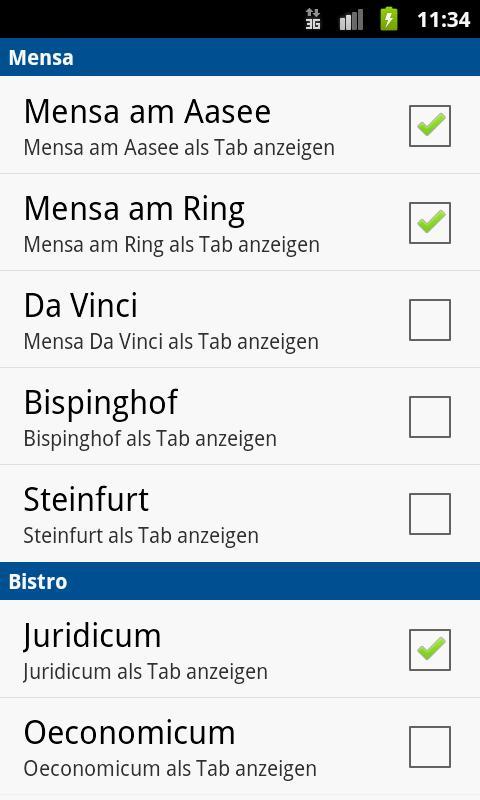 คุณสามารถดู menues จากโรงอาหารทั้งห้าในMünster