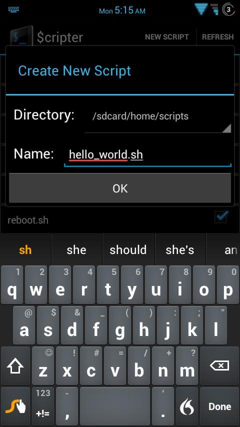 แอพนี้ช่วยให้คุณสามารถเขียนและเรียกใช้สคริปต์เชลล์ มันทำงานเป็นความสามารถของรูทหากอุปกรณ์ Android ของคุณถูกรูท นำเข้าสคริปต์ได้อย่างง่ายดายจากหลายไดเรกทอรีและสร้างสคริปต์ใหม่ในไดเรกทอรีที่ระบุ