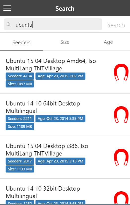 นี่เป็นเพียงเครื่องมือค้นหาเท่านั้นและไม่ดาวน์โหลด torrents ซึ่งเป็นไคลเอนต์ฝนตกหนักจะต้องสามารถดาวน์โหลดลิงก์แม่เหล็กได้