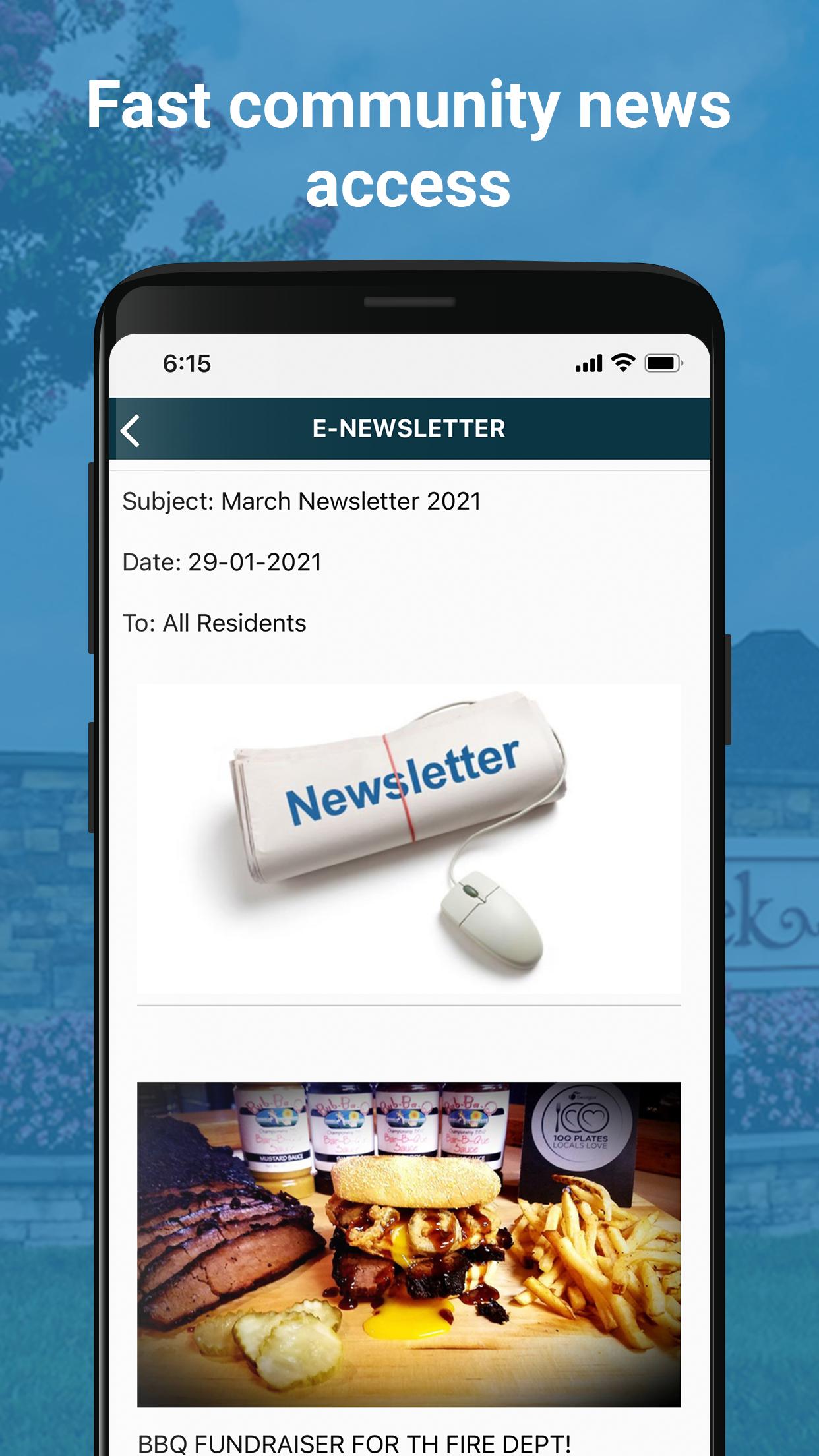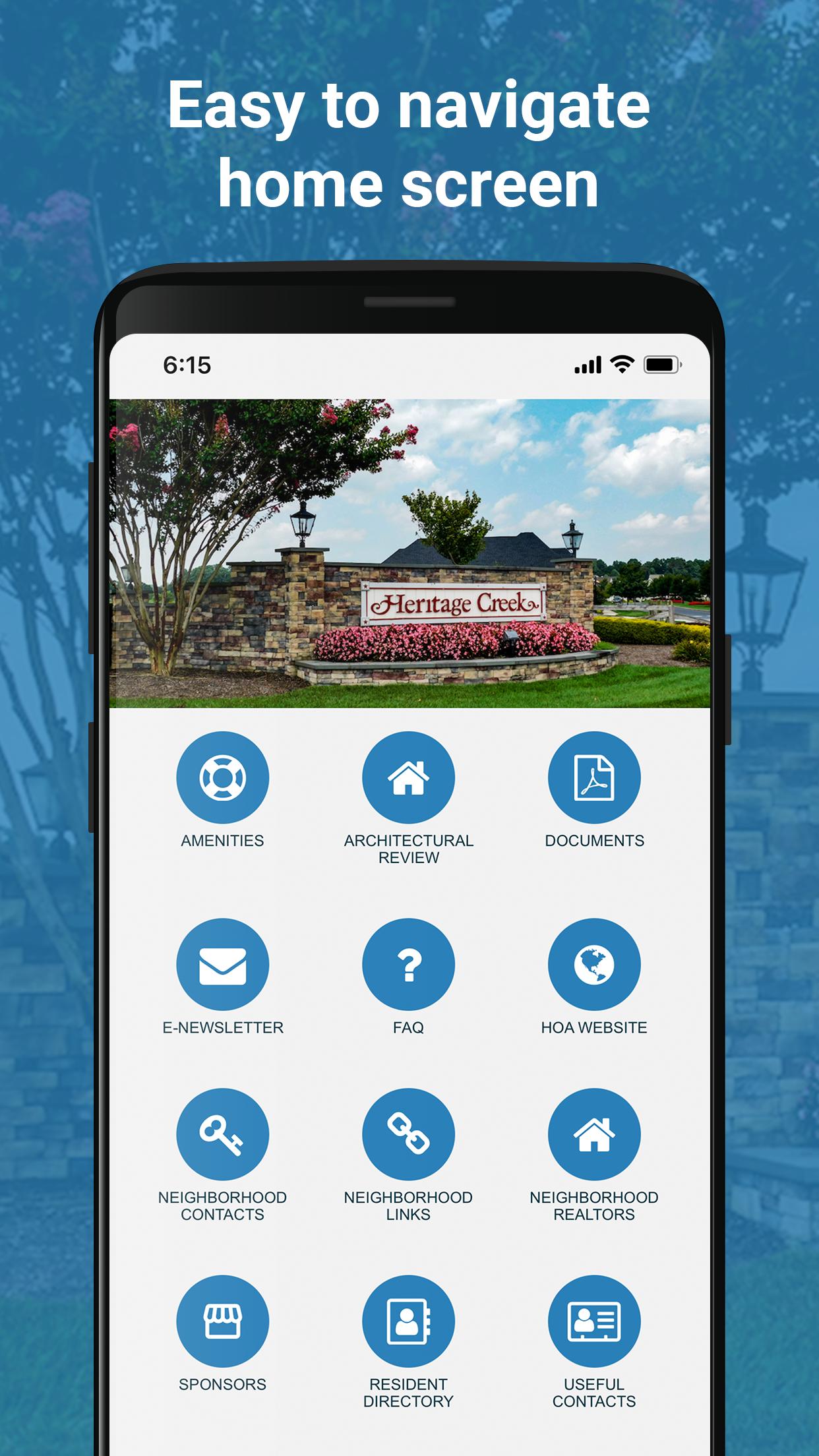 ระเบียงด้านหน้าได้รับการจัดการโดยตรงโดย HOA หรือองค์กรปกครองของชุมชน แอพมือถือเป็นวิธีการสื่อสารกับผู้อยู่อาศัย HOA สามารถแสดงกระดานข่าวส่งการแจ้งเตือนแบบพุชไปยังผู้อยู่อาศัยแสดงปฏิทินกิจกรรมให้การเข้าถึงเอกสารการติดต่อผู้ดูแลระบบสิ่งอำนวยความสะดวกและให้ข้อมูลเพิ่มเติมแก่ผู้อยู่อาศัยทั้งหมดในชุมชน