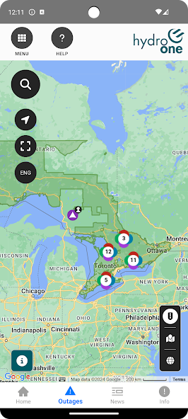 แอพมือถือของ Hydro One ให้บริการลูกค้า Hydro One ด้วยข้อมูลโดยละเอียดเกี่ยวกับการหยุดทำงานและเวลาการฟื้นฟูทั่วทั้งพื้นที่บริการของเราในออนแทรีโอประเทศแคนาดา
