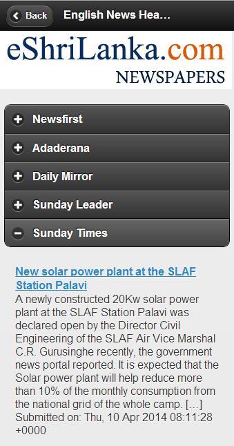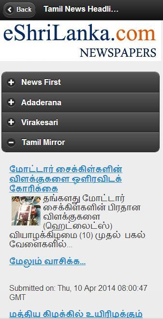 หลีกเลี่ยงความยุ่งยากทั้งหมดในการติดตั้งแอพหลายตัวสำหรับเอกสารข่าวต่าง ๆ ข่าว Eshrilanka ให้ข่าวลือข่าวหนึ่งเรื่องจากหนังสือพิมพ์ออนไลน์ชั้นนำหลายฉบับในภาษาสิงหลทมิฬและภาษาอังกฤษ