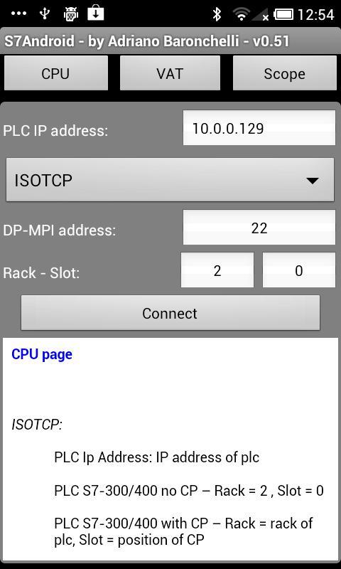 S7Android ช่วยให้คุณสามารถดูและเปลี่ยนสถานะของตัวแปรภายในของตระกูล PLC Siemens S7 การเชื่อมต่อกับ PLC คือผ่าน WiFi