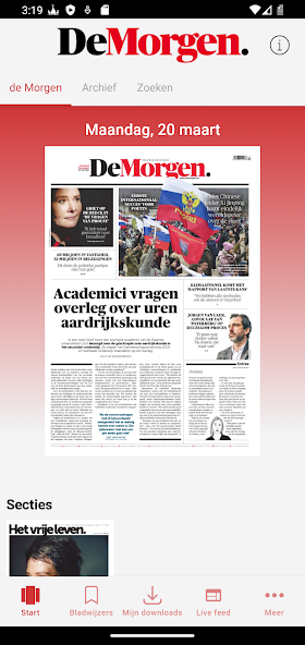 - คุณเลือกวิธีที่คุณต้องการอ่าน de Morgen: ราวกับว่ามันเป็นหนังสือพิมพ์กระดาษหรือต่อบทความในเวอร์ชันข้อความและภาพที่ง่าย