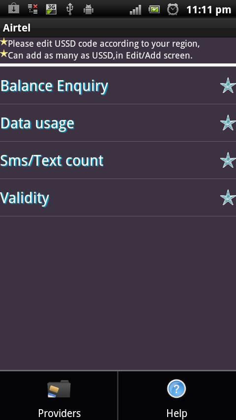การใช้แอปพลิเคชั่นนี้ทุกคนสามารถบันทึก USSD ที่ต้องการได้อย่างง่ายดายตามตัวดำเนินการและโทรออกได้อย่างง่ายดาย. ผู้ใช้มีอิสระในการเพิ่ม /แก้ไข USSD ตามรหัสผู้ให้บริการ. default USSD ที่ให้บริการขึ้นอยู่กับผู้ให้บริการ หากรหัส USSD ไม่ทำงานโปรดไปที่หน้าจอเพิ่ม/แก้ไขและขึ้นอยู่กับภูมิภาคกำหนดค่า USSD
