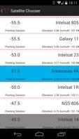 Satellite Dish Pointer มาพร้อมกับรายการผู้ใช้ที่ปรับแต่งได้ของดาวเทียม Geosynchronous มากกว่า 230 รายการและมีจอแสดงผลที่เรียบง่ายและใช้งานง่ายเพื่อแนะนำคุณถึงที่ดาวเทียมอยู่บนท้องฟ้า