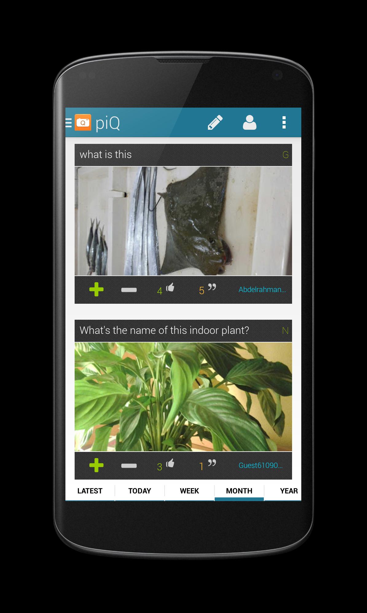 ตัวอย่างเช่นผู้ใช้สามารถถ่ายภาพต้นไม้และถามได้ว่านี่คือต้นไม้ประเภทไหน? ผู้ใช้คนอื่น ๆ ของแอพสามารถตอบคำถามด้วยคำตอบของพวกเขา คำตอบสามารถลงคะแนนได้จากผู้ใช้รายอื่นไม่ว่าจะขึ้นหรือลงคำตอบที่ได้รับคะแนนสูงสุดจะปรากฏขึ้นที่ด้านบนของรายการคำตอบ สิ่งนี้คล้ายกับกลไก Reddit ใช้ในระบบความคิดเห็นของพวกเขาเพื่อตะโกนคำตอบที่ดีจากสิ่งที่ไม่ดี