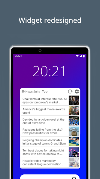 วิดเจ็ตได้รับการออกแบบใหม่ หมวดหมู่บทความสามารถเปลี่ยนเป็น "กีฬา", "ความบันเทิง" ฯลฯ สามารถเพิ่มได้จากหน้าจอหลัก