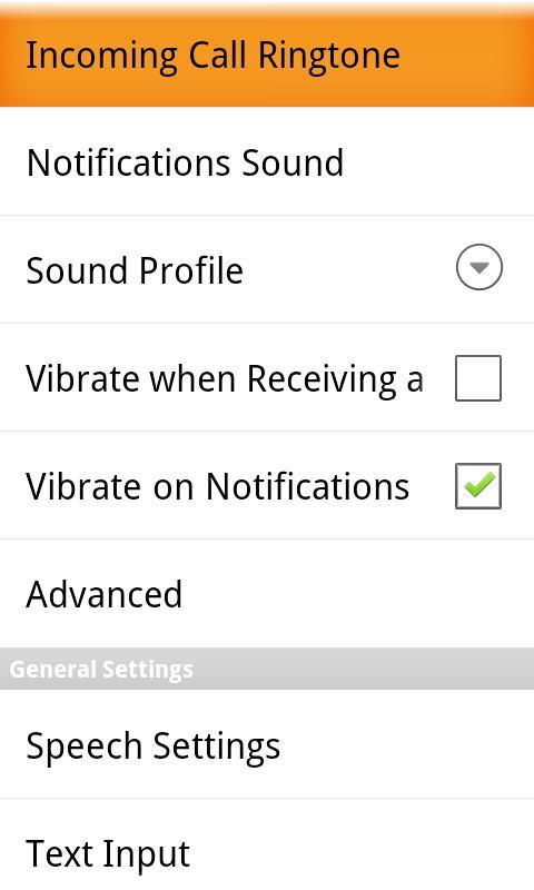 - การตั้งค่า: การเปลี่ยนแปลงการเชื่อมต่อระฆัง การกำหนดค่าปฏิกิริยาของโทรศัพท์และการแจ้งเตือน (การสั่นสะเทือนหรือเสียง) การกำหนดค่าของคีย์บอร์ดสะท้อนการประกาศเครื่องหมายวรรคตอนก้าวและความสูงของการพูด ฯลฯ