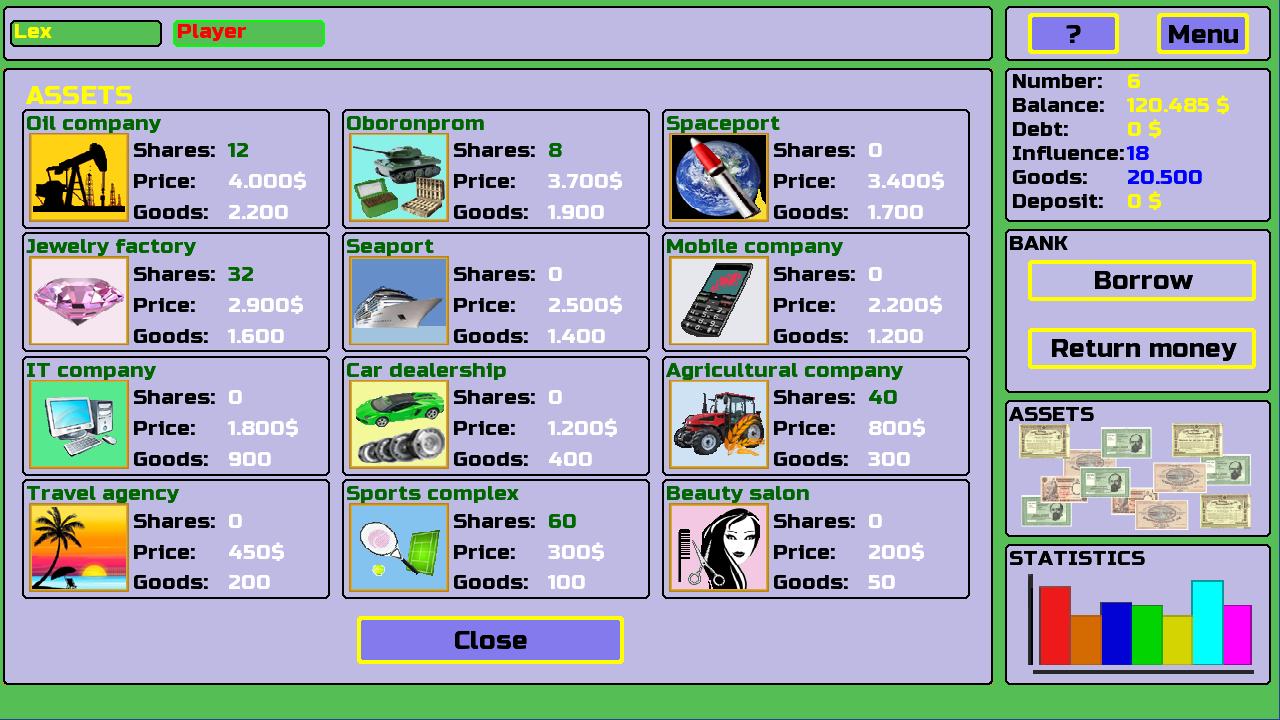 เกมเศรษฐกิจเปิดโอกาสให้ซื้อและขายโปรโมชั่นเล่นคาสิโนยืมเงินทำธุรกรรมที่ทำกำไรได้และอื่น ๆ อีกมากมาย