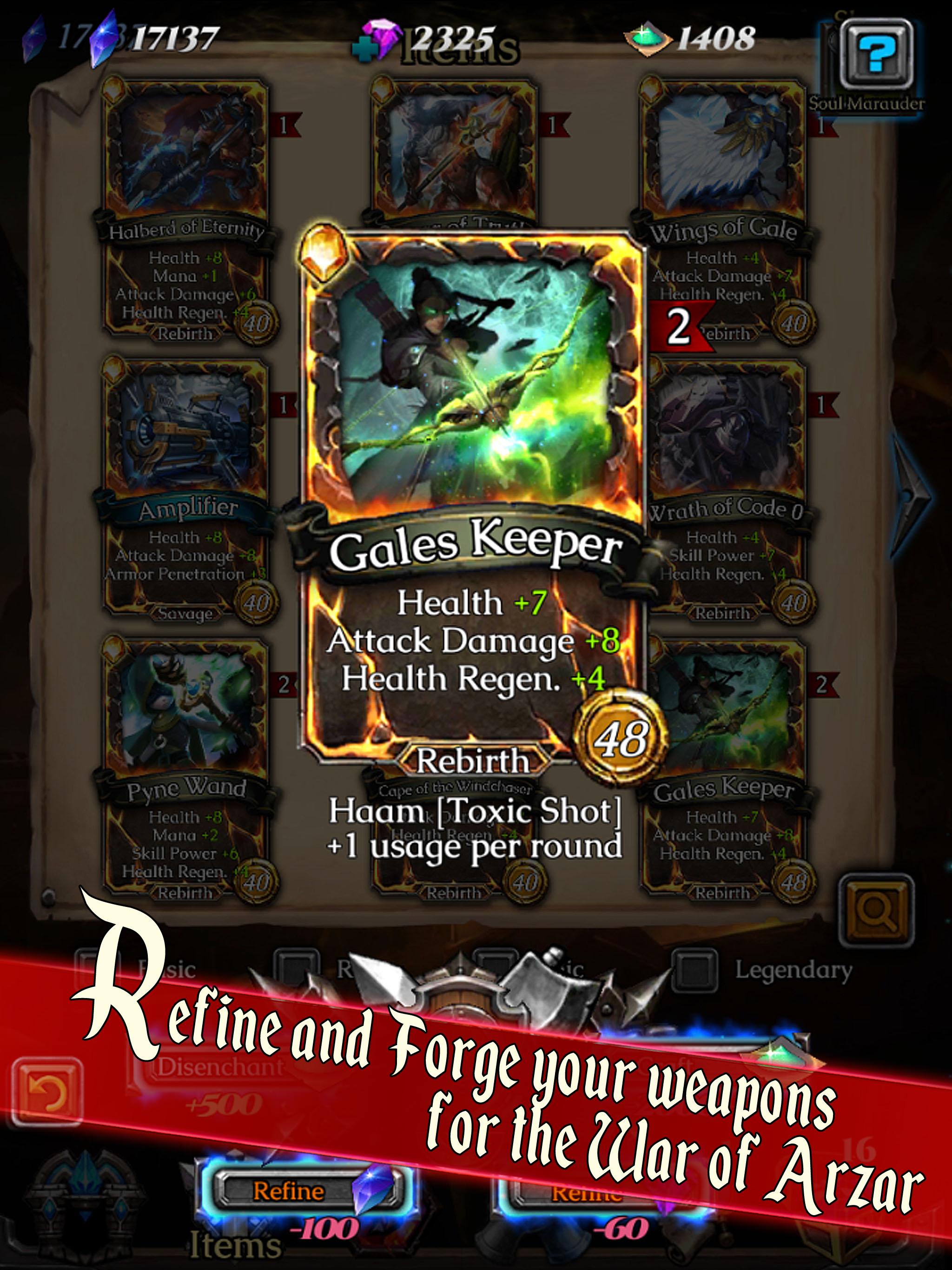 รวบรวมเกียร์ที่ทรงพลังและใช้เพื่อสร้างดาดฟ้าฮีโร่ของคุณจัดเตรียมเกียร์เพื่อปรับปรุงสถิติฮีโร่ของคุณและความพยายามทักษะในสนามรบ