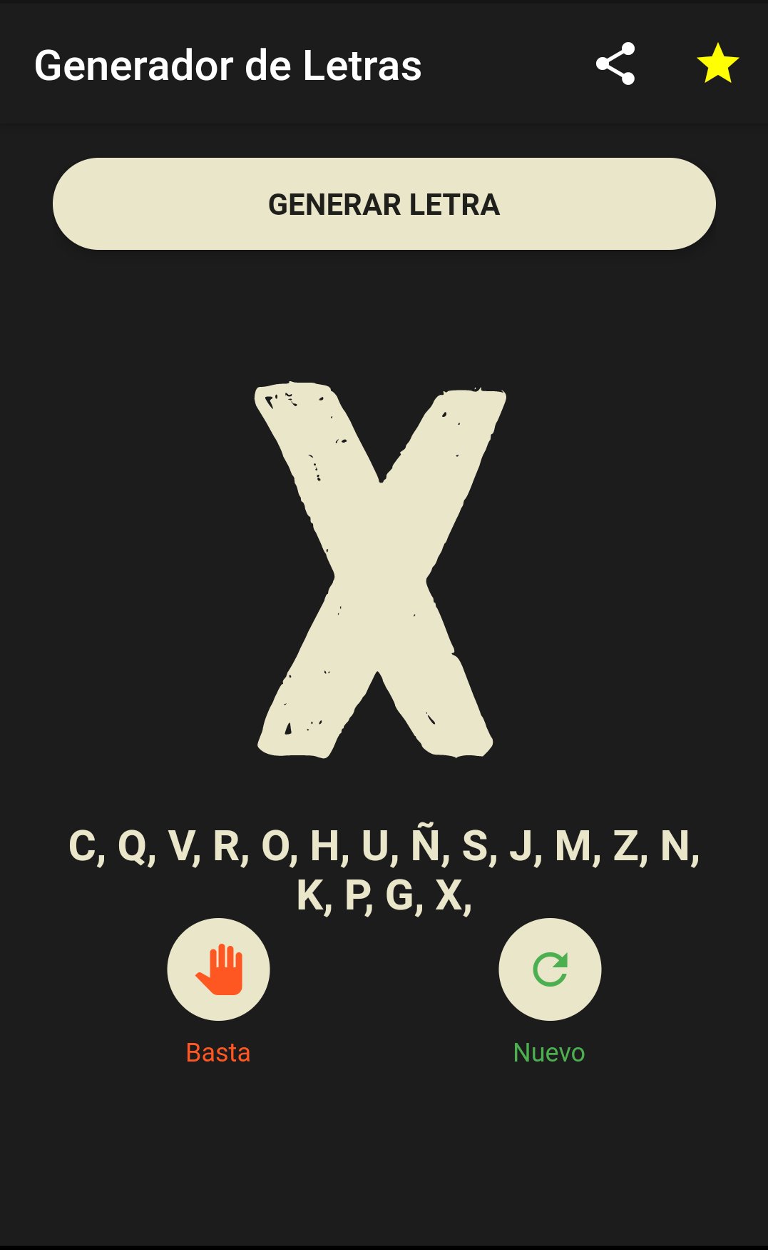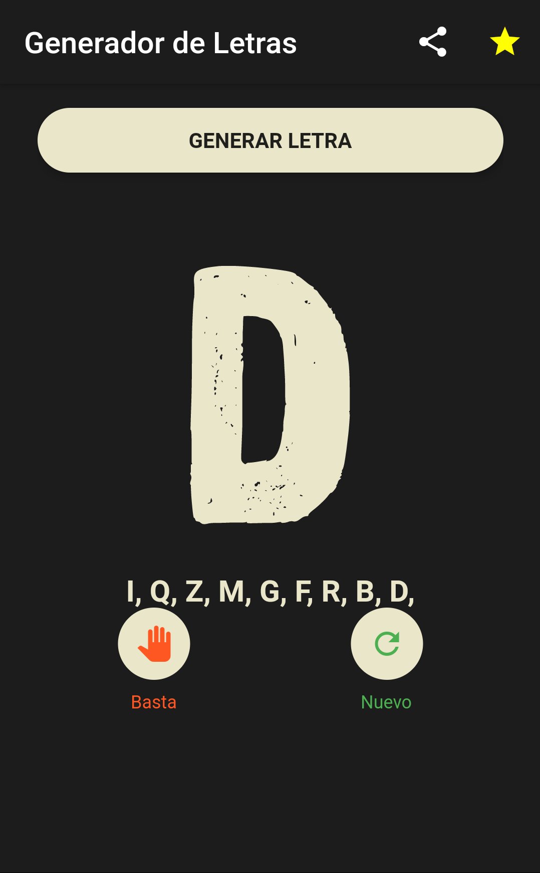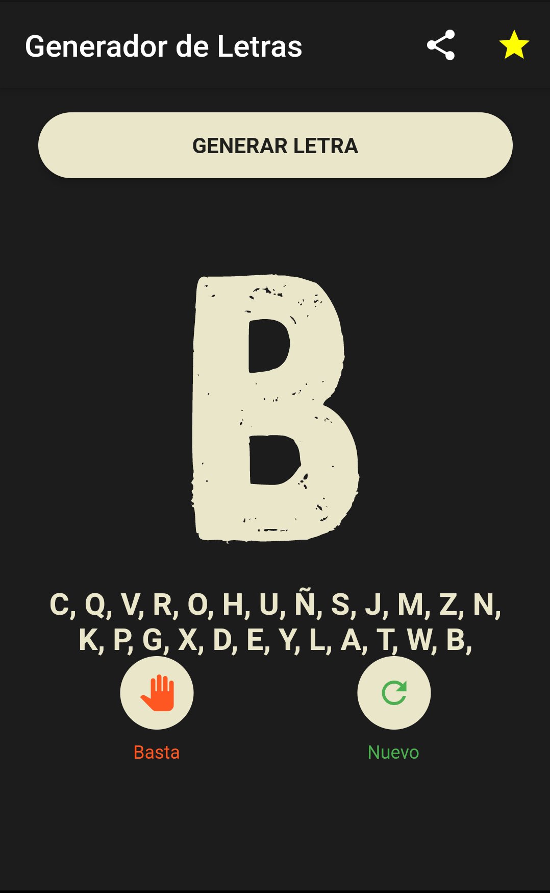 แอปพลิเคชั่นนี้รองรับการสร้างตัวอักษรเพื่อใช้ในเกม Basta แบบดั้งเดิม