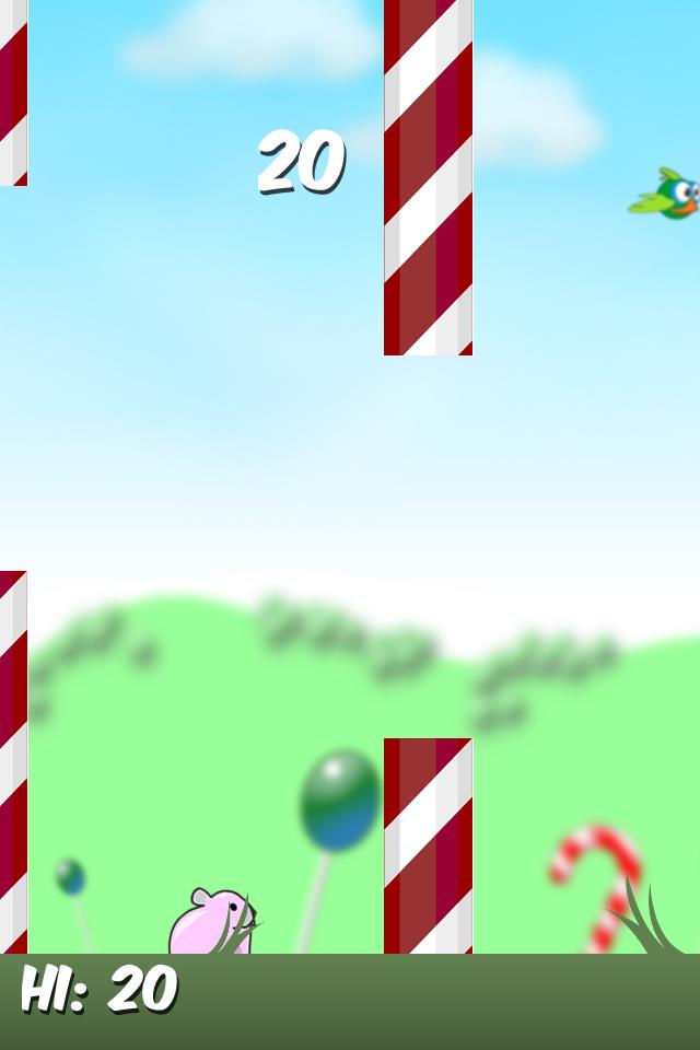 เรียบง่าย แต่สนุกกับการผจญภัยกระรอก flappy ใน Candyland สีสันสดใส! แตะเพื่อกระโดด!
