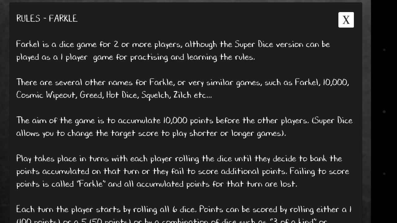 Farkle: เล่น Farkle ด้วยผู้เล่นมากถึง 6 คน แอพดูแลการให้คะแนนและกฎ คุณสามารถเลือกคะแนนเป้าหมายและจำนวนผู้เล่น