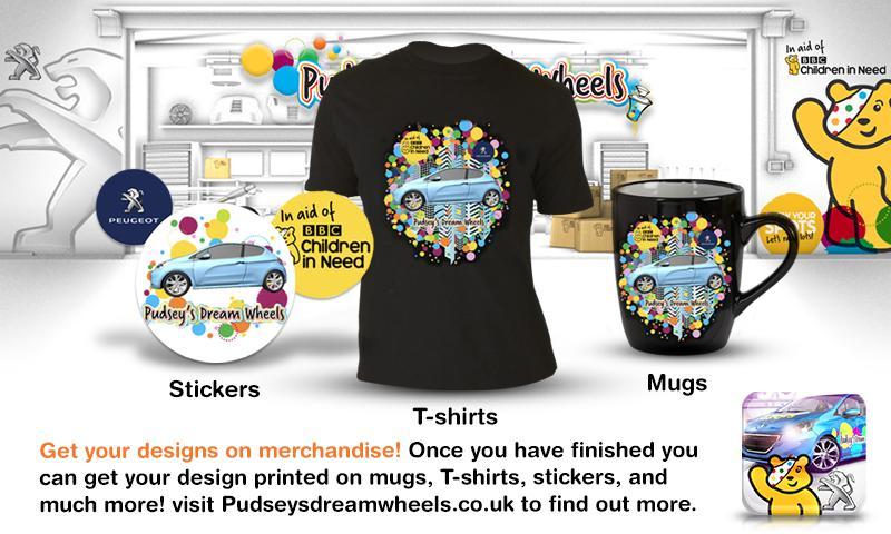 การออกแบบของคุณสามารถพิมพ์บนแก้วเสื้อยืด hoodies, t-towels, กระป๋องดินสอ, สติกเกอร์และแม้แต่เสื้อยืดตุ๊กตาเล็ก ๆ สำหรับ Pudsey ที่จะสวมใส่
