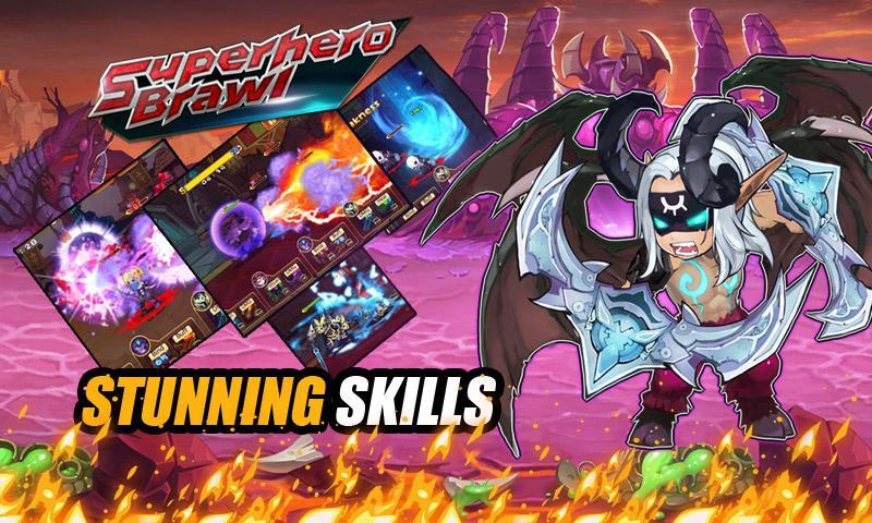 Superhero Brawl เป็นเกม RPG ผจญภัยที่มีโหมดการเล่นเกมต่าง ๆ เช่นคอลเลกชันและการพัฒนาของซูเปอร์ฮีโร่จากโลกอื่น ๆ การรวมกันของการก่อตัวที่แตกต่างกันและระบบ PVP