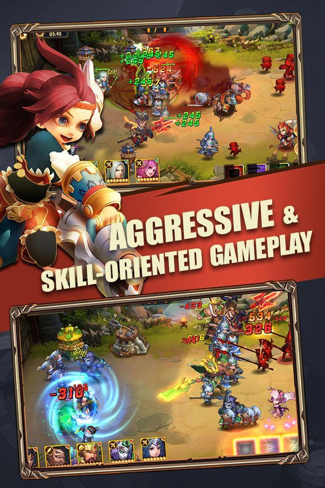 - รับสมัครและอัพเกรดฮีโร่ด้วยทักษะและความสามารถที่เป็นเอกลักษณ์