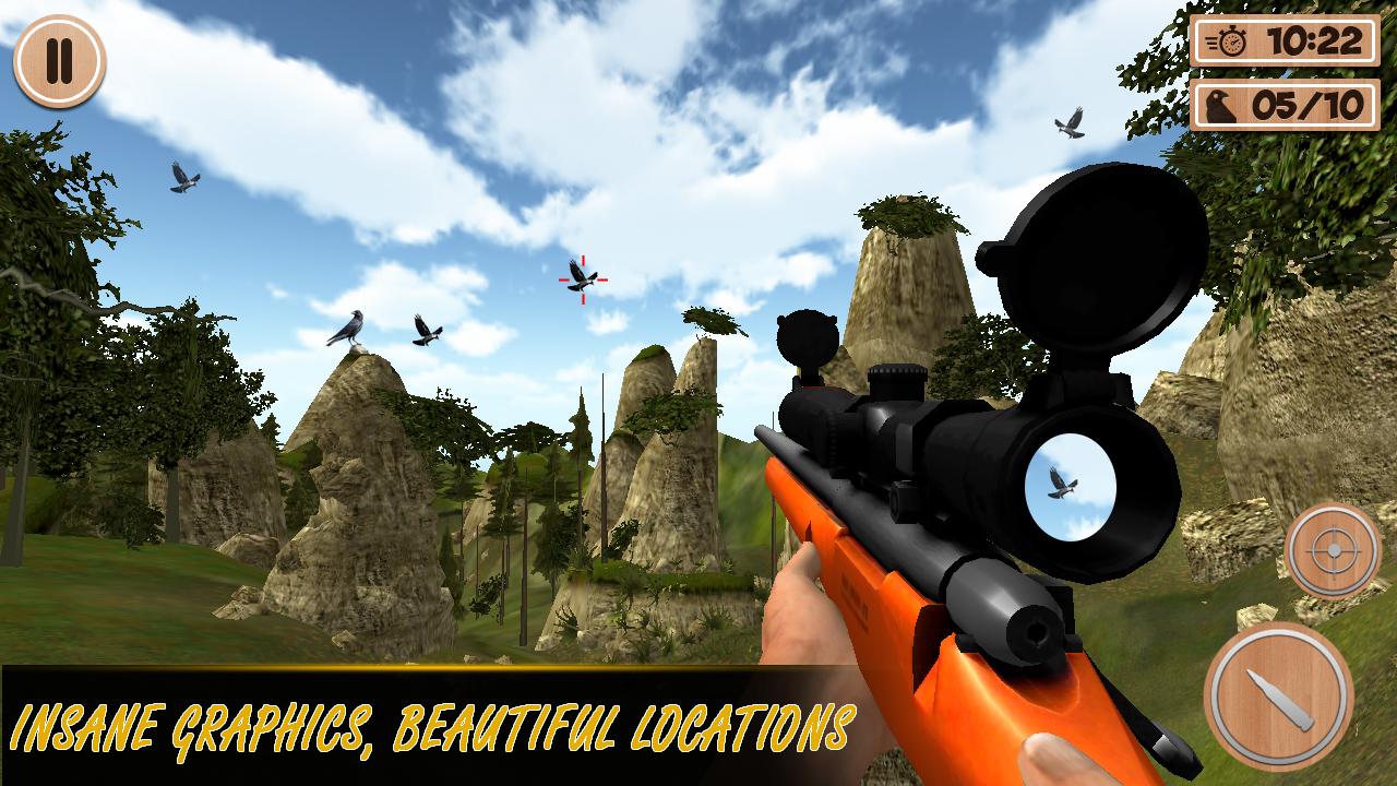 คุณสมบัติของ Forest Crow Hunting - เกม 3D: