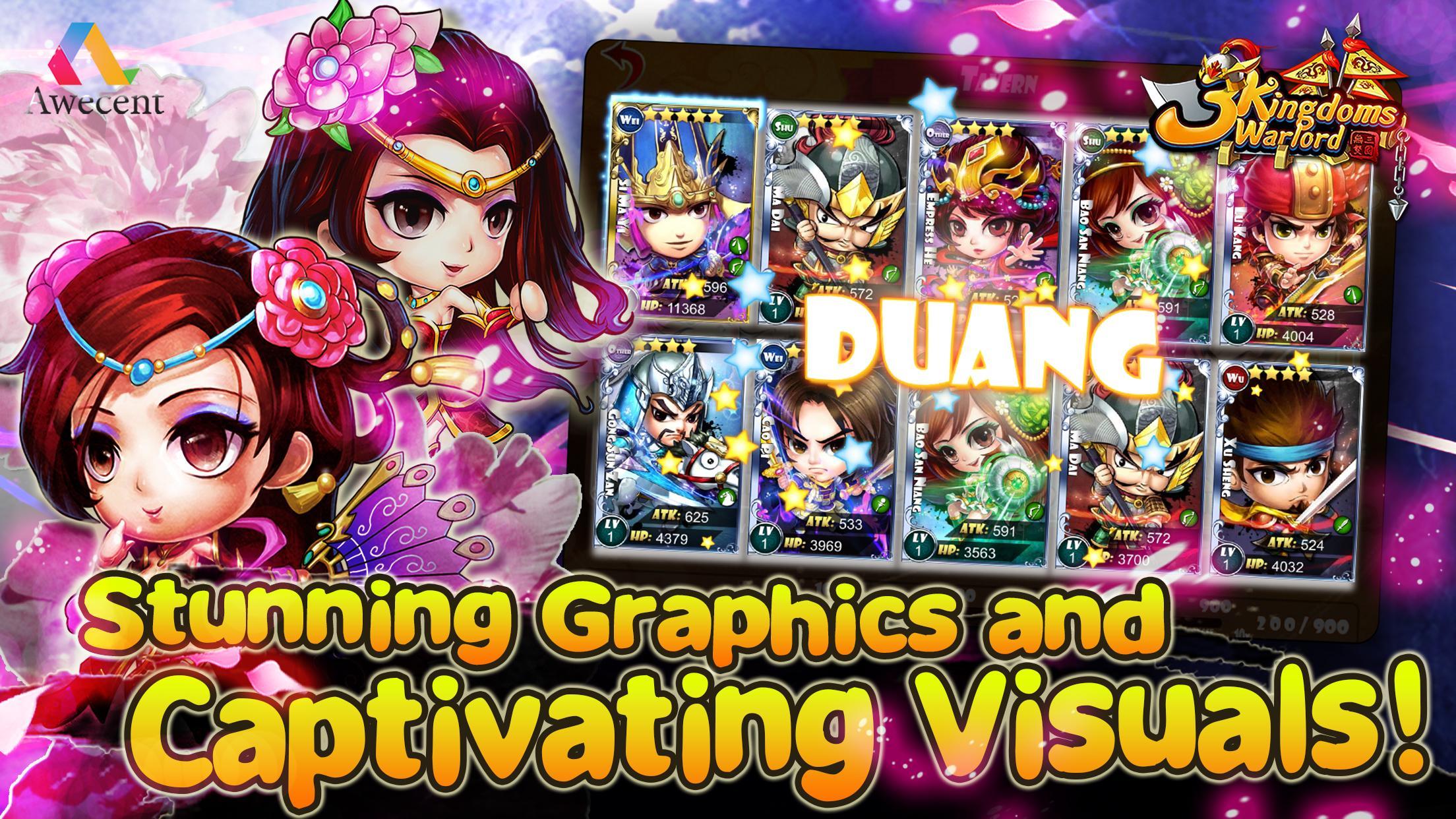นำเสนอการเล่นเกมที่ไม่เคยเห็นมาก่อนในเกมลูกผสม MOBA และการ์ดการ์ด 3 Kingdoms Warlord ผสมผสานองค์ประกอบกลยุทธ์เรียลไทม์ที่น่าทึ่งกับเกมไพ่การ์ดมือถือ ผู้เล่นสามารถรับสมัครขุนศ์ตำนานเช่น Liu Bei, Sun Quan, Cao Cao และนายพลที่มีชื่อเสียงอื่น ๆ ที่อาศัยอยู่ในยุคที่มีชื่อเสียง 3 ราชอาณาจักรเพื่อช่วยพิชิตและปกครองอาณาจักรใหม่! สร้างอาณาจักรมหากาพย์โดยการเอาชนะศัตรูของคุณหรือเสี่ยงต่อการกลายเป็นอะไรนอกจากความล้มเหลวที่น่าหดหู่!