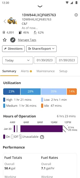 •在近实时查看机器速度和燃油水平
