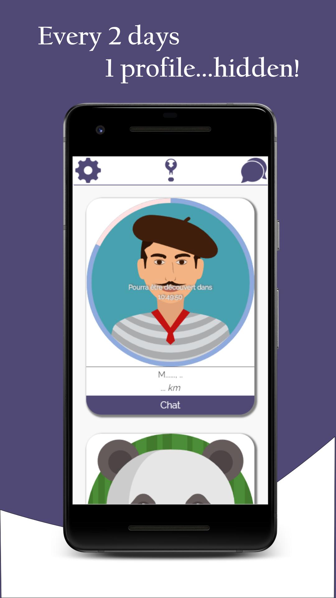 为了在没有先验的情况下互相发现,并且您的个人资料和图片在整个对话中都隐藏了。没有脸,没有名字,没有年龄。你们只知道随着对话的进行,您正在披露的内容