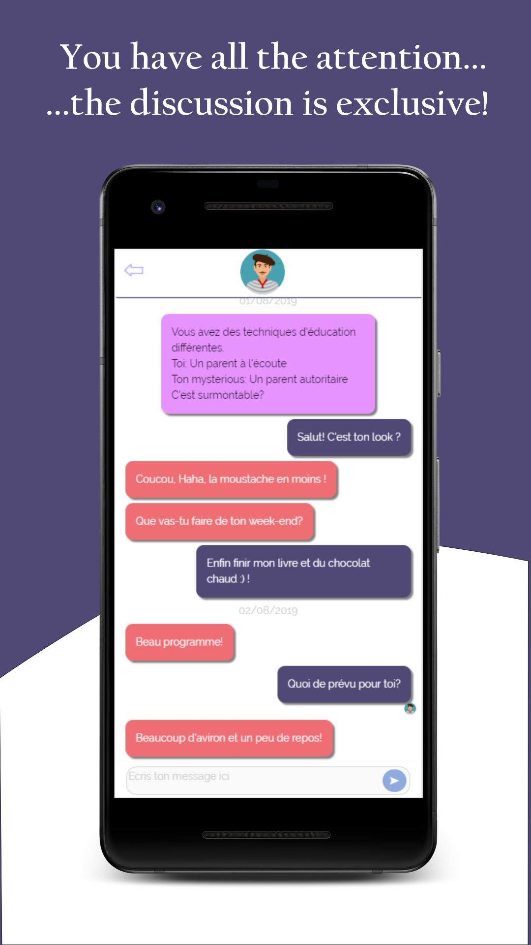 每2天,根据您的Préférences选择,与另一名成员进行48小时的对话。选择标准已减少到最低限度,以使机会和惊喜成为爱情相遇的核心,