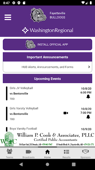 父母,学生团体,大家庭和粉丝现在可以直接从应用程序与当地的高中体育计划保持联系。观看现场游戏,收到最终成绩的警报,访问新闻,名册等。