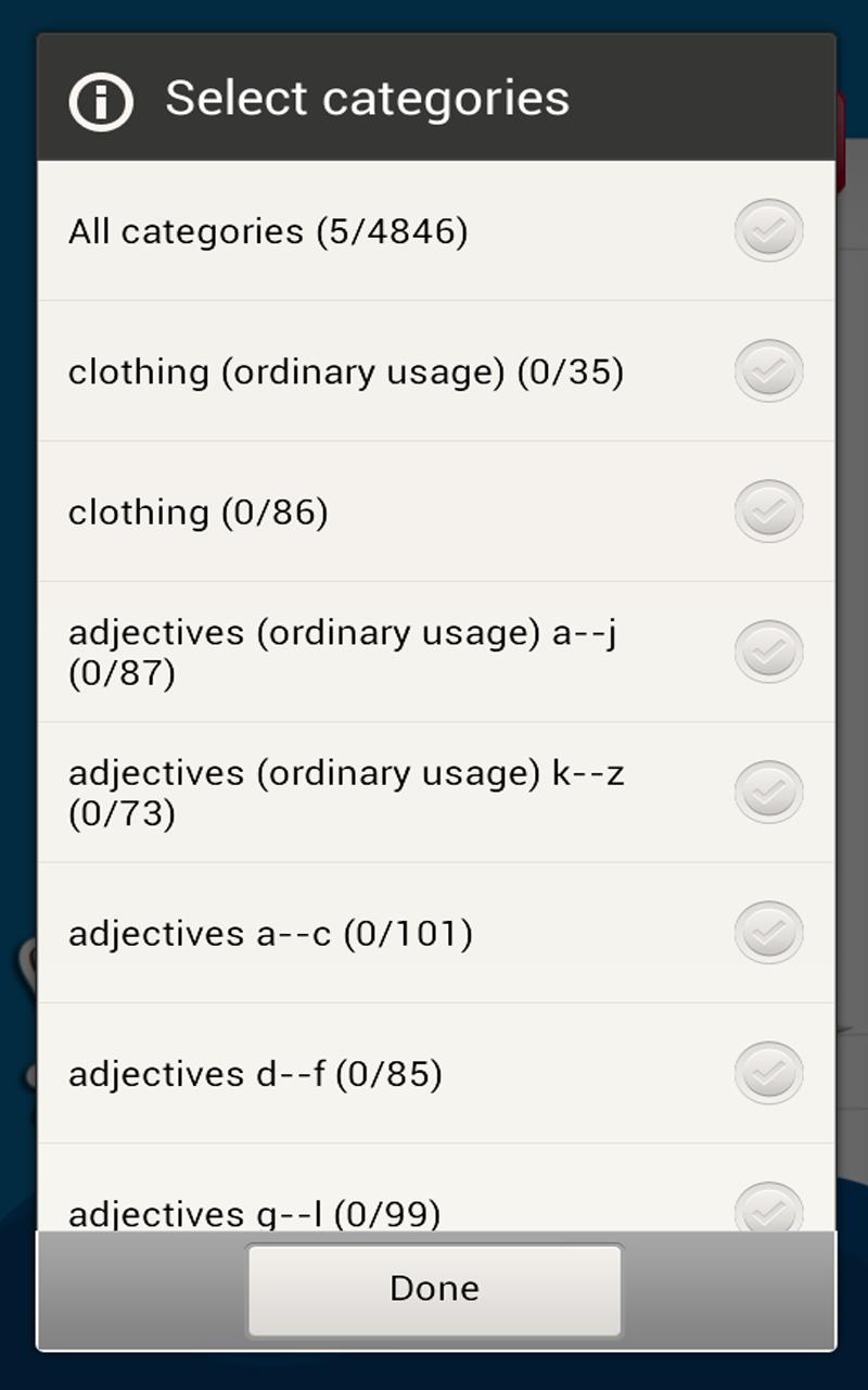 “单词”的单词被组织成类别,以便您让您以阿拉伯语为特定的感兴趣领域学习单词。您可以一次选择多个类别,并使学习课程越来越复杂。