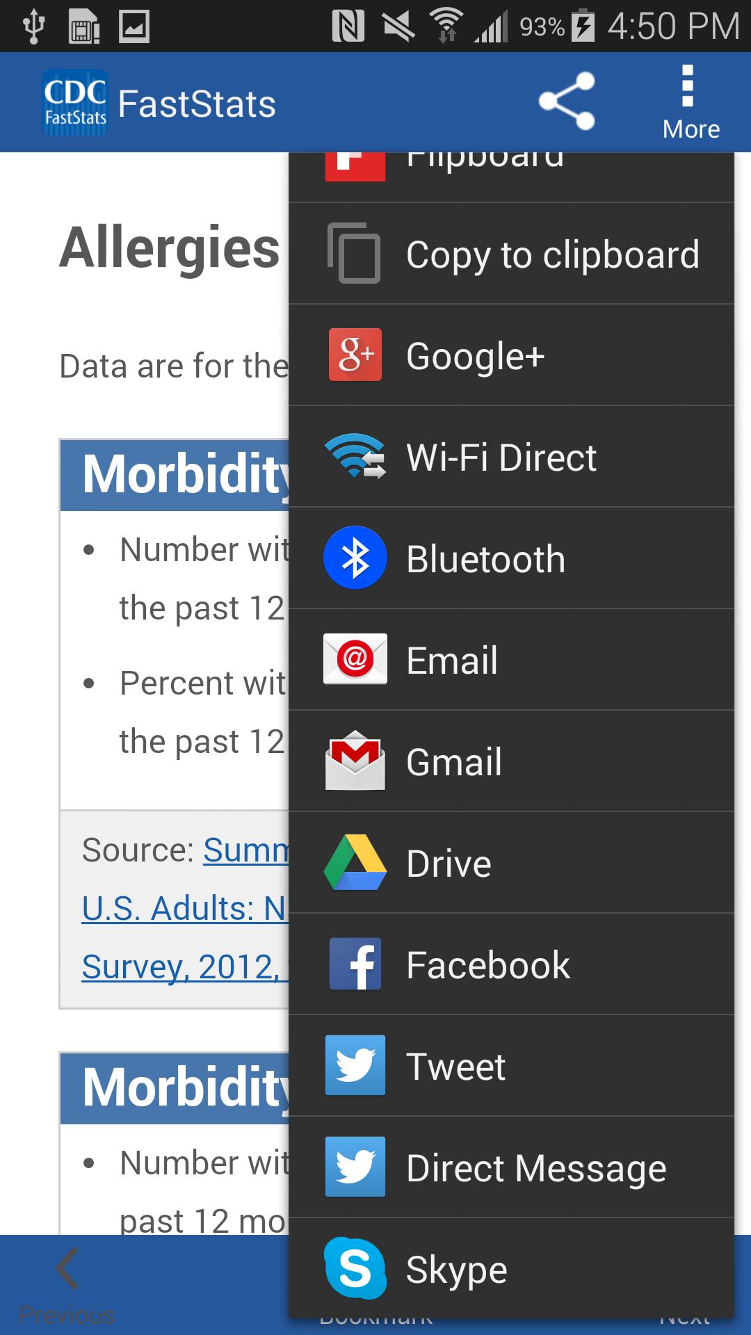 FastStats是疾病控制与预防中心(CDC)国家卫生统计中心(NCHS)的官方申请,并将触手可及的特定于主题的统计数据触手可及。主题包括疾病和条件,家庭生活,医疗保健和保险,健康状况和风险因素,伤害,生命阶段和人口以及生殖健康。当设备连接到Internet时,将自动更新内容,从而为用户提供最新的健康统计信息。