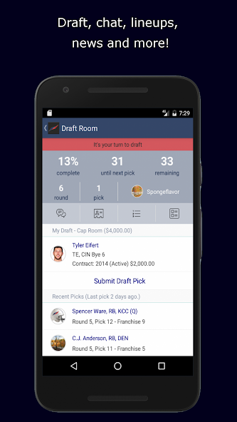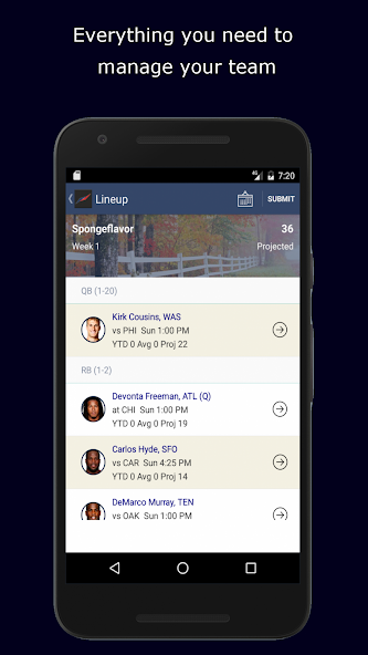 您可以提交阵容并查看比赛,联赛排名和现场分数。阅读和发布消息在您联盟的留言板上,草案玩家并查看选秀结果,阅读球员新闻并与您的联盟聊天。还有更多!
