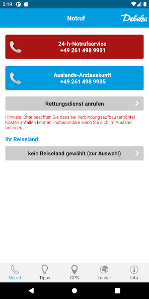 国外紧急?帮助提供免费的Debeka应用程序“外国SOS”。
