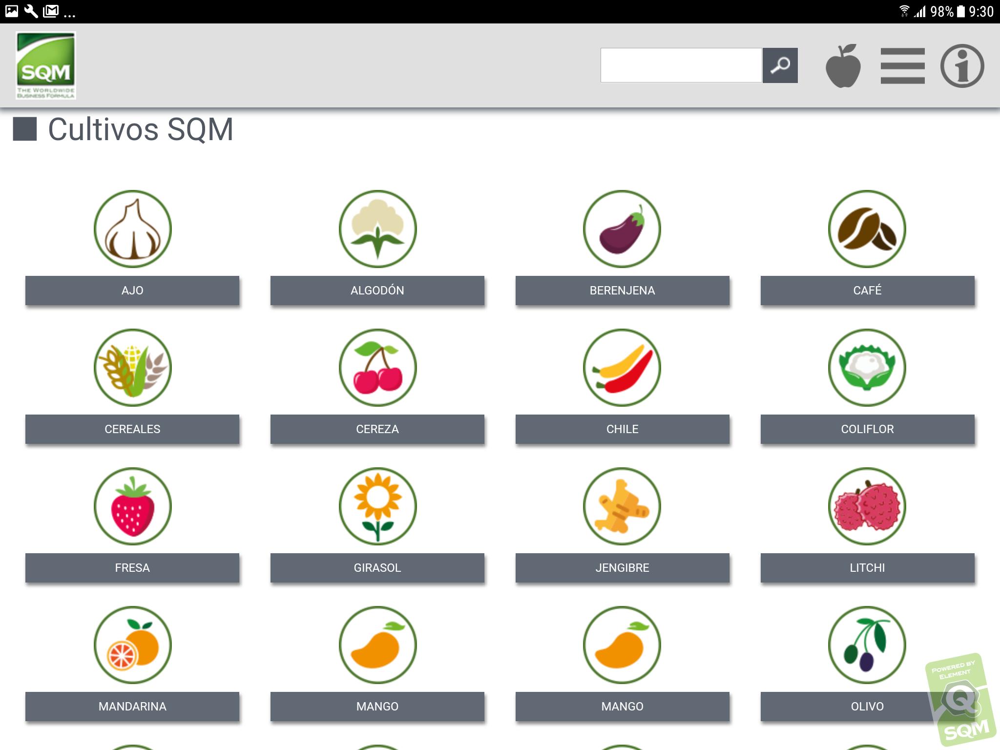您还可以找到作物信息;它的物候阶段是什么,营养障碍的参考图像或获得SQM建议每种作物推荐的肥料计划。