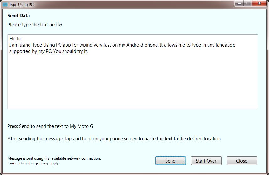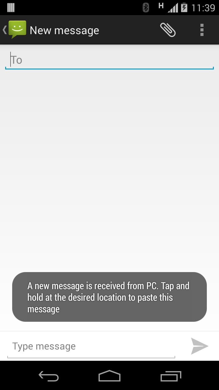 要在Android设备上输入,只需在PC上Type Using PC中输入任何文本即可。您在PC应用程序中输入的任何内容都将发送到手机的剪贴板。该文本可以粘贴到设备上的任何应用程序,例如电子邮件,消息传递等。