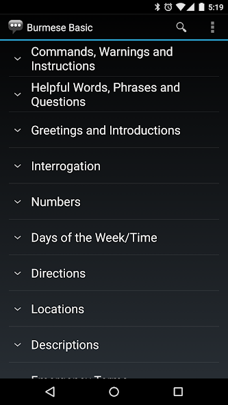 使用此应用程序,您可以选择一个英语短语,并查看其翻译以及如何在缅甸语中发音。