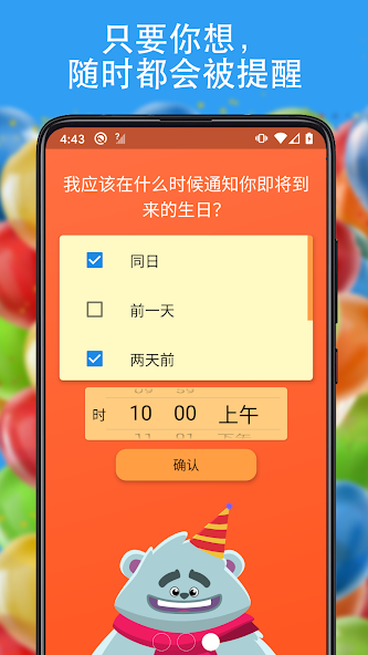 ✔提醒:在想通知生日之前的几天,请设置几个提醒。您也可以指定时间。