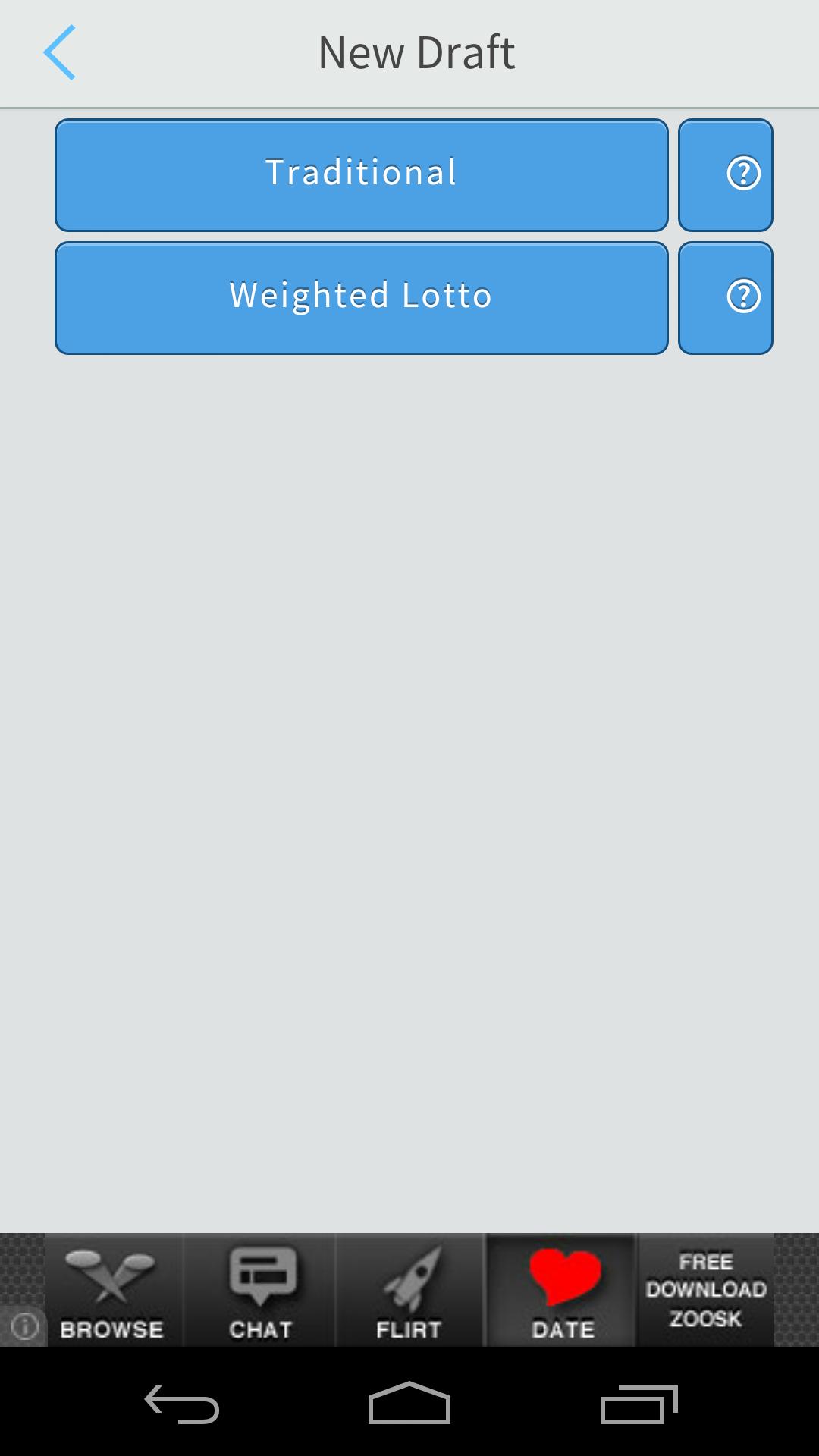Fantasy Draft Randomizer可帮助专员在毫不费力的情况下设置草稿。它包括传统和加权乐曲草稿类型。创建一个新草稿,选择团队数量和名称。之后,FDR将使用您选择的草稿类型为您随机提供草稿。简单而直接的方式设定草稿订单!