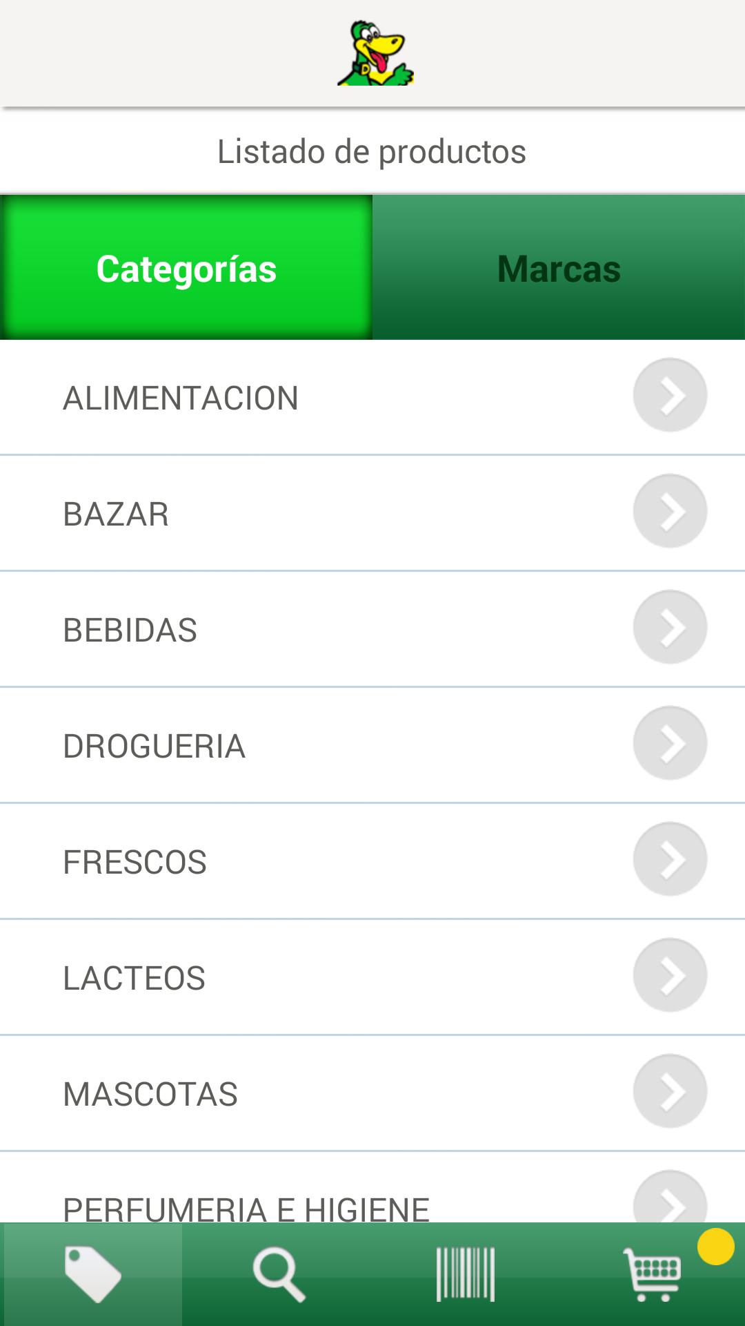 购买列表:您可以通过扫描任何产品的代码或在搜索引擎中写下其名称,将产品添加到您的购买列表中。您还可以按类别选择产品。