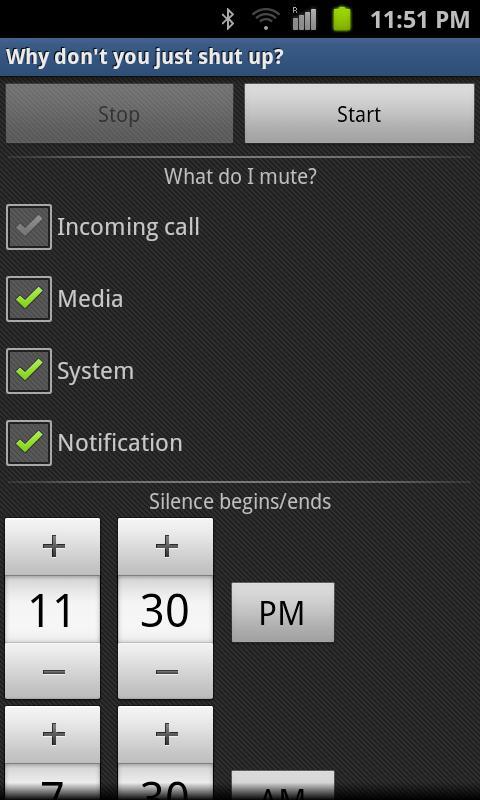 安排手机保持沉默的时间。其他应用程序仅允许您打电话给铃声...但是,这允许您选择静音的内容(来电,媒体,通知和/或系统声音)。