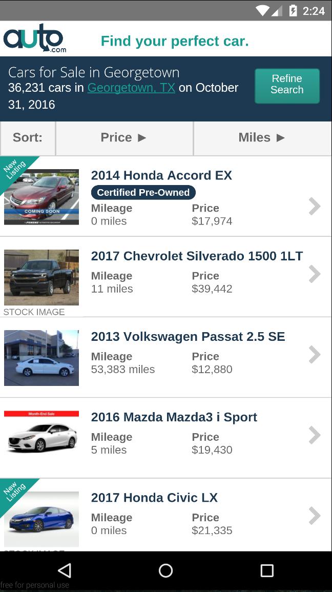 Auto.com的免费应用程序可帮助您在附近找到新的和二手车。点击我们的车辆搜索以找到理想的汽车,卡车或SUV。寻找汽车?别再看。