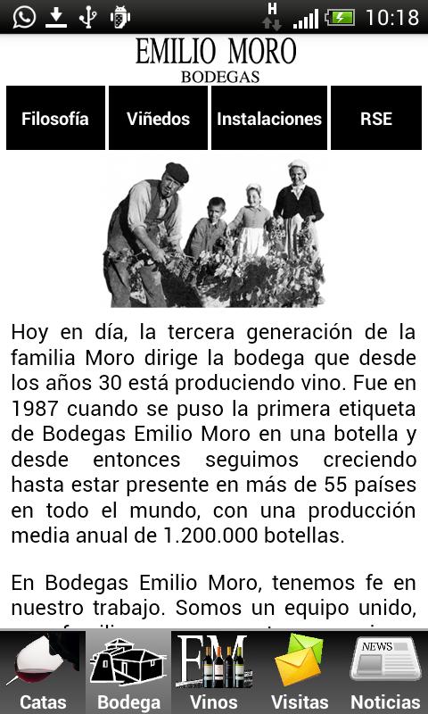 应用程序可以从Ribera del Duero中的一个酿酒厂参考的手中学习有关葡萄酒世界的秘密: Emilio Moro Winery 。此外,您可以创建每种葡萄酒品尝的历史,并包括它们的照片。它还显示有关我们和我们的葡萄酒的信息:Villa Resalso,Emilio Moro,Malleolus,Valderramiro的Malleolus,Sanchomartín的Malleolus和Emilio Moro Clone Family。