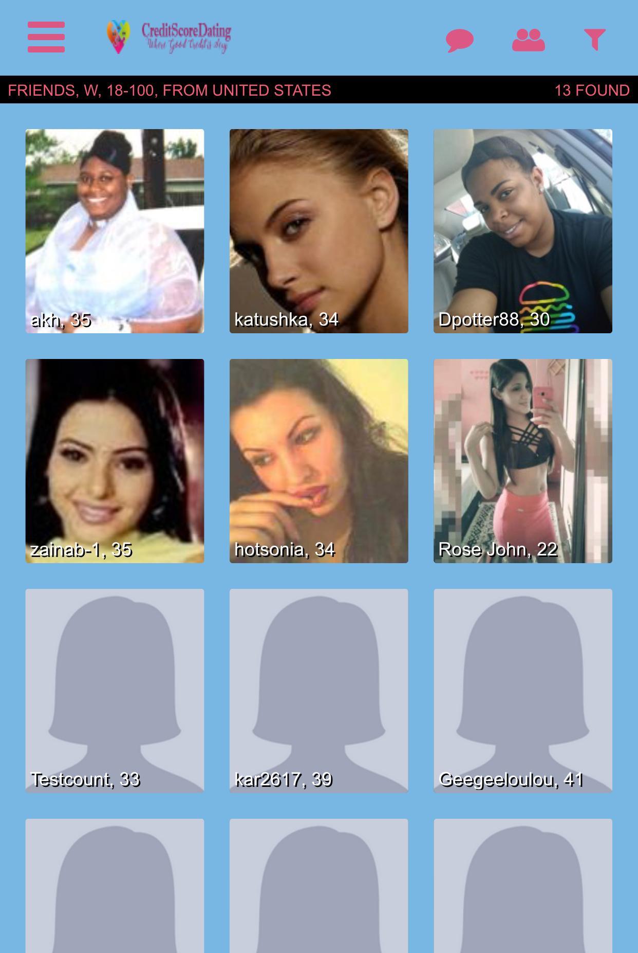 Credit Score Dating基于信用和财务兼容性与单打匹配。