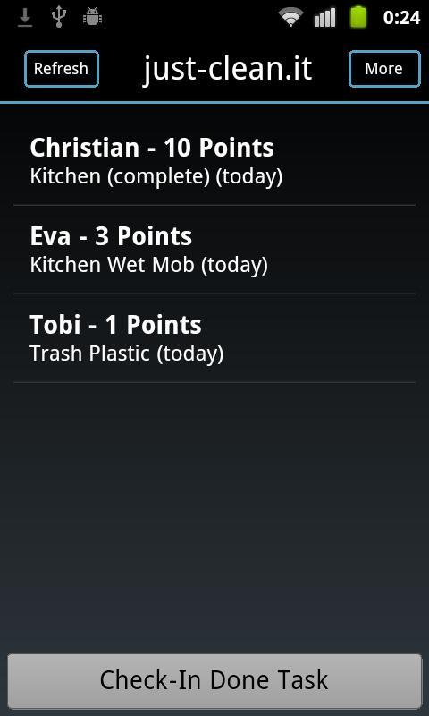 而不是固定的清洁时间表使用just-clean.it清洁。您的分数将在您的生活社区组中的所有智能手机之间自动同步。非常适合学生,年轻夫妇或有孩子的家庭:)