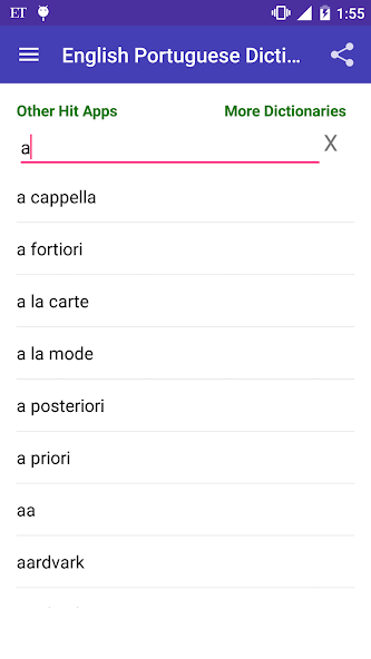 离线English Portuguese Dictionary词库包含150000多个单词,其反义词和同义词及其用作形容词,动词,副词或名词。