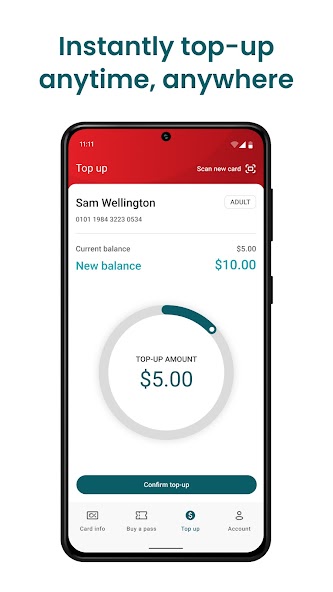 充气 - 立即充气,没有交易费。使用拨盘选择一个上层值,或点击以输入所需的金额。该应用程序将记住您的最后一个充值金额,以使下次更快。